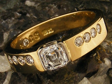 Ascher cut diamond, asscher cut, punched set, one ring, unique diamonds, engagement ring,modern ring, rocs, RoCS, queen street, richmond jewellers, nelson jewellers